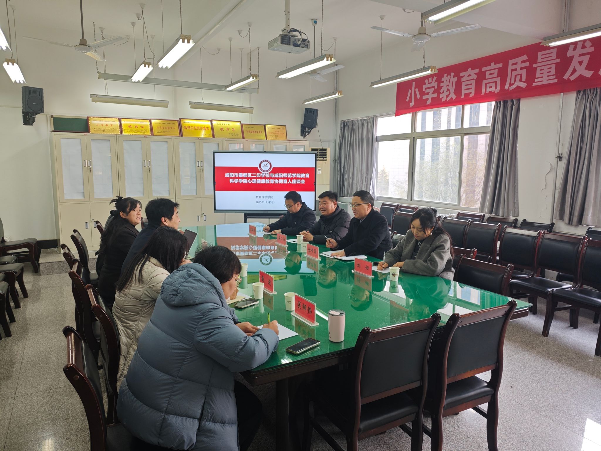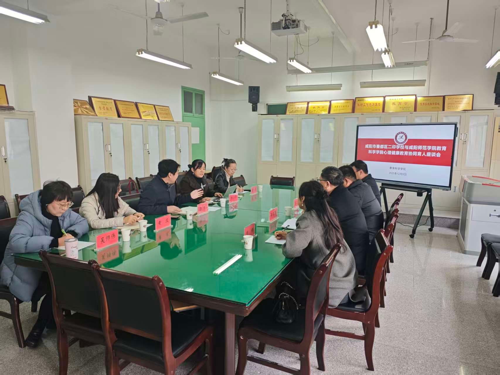 为深入推进心理健康教育校地协同育人机制建设,充分发挥高校专业资源优势服务基础教育发展,12 月 5 日上午,咸阳秦都区二印学校校长带领学校相关负责人一行四人,莅临咸阳师范学院教育科学学院,就心理健康教育合作事宜开展专题研讨。教育科学学院领导班子成员及应用心理专业部分骨干教师参加会议,会议在学院会议室隆重举行。