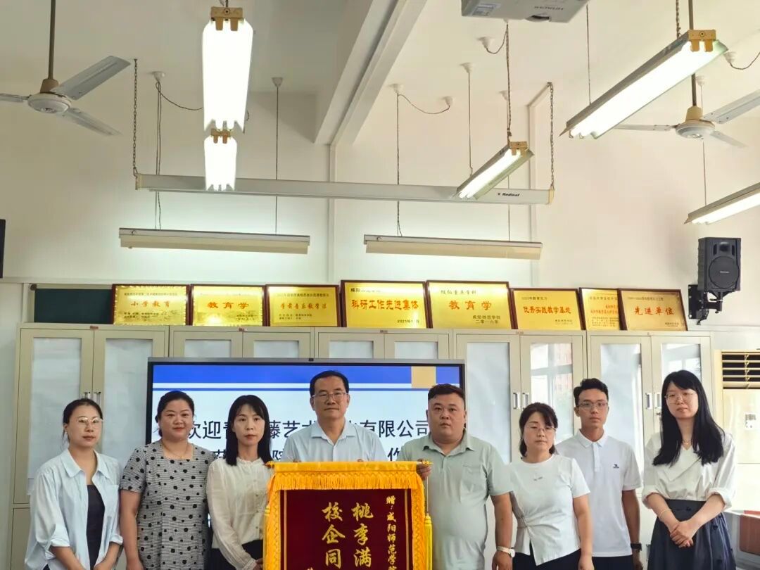 随后,高庆理事长介绍了公司的发展概况、业务范围及核心优势。他表示,教育科学学院在教育领域的深厚积淀与公司的发展需求高度契合,希望通过此次合作,充分发挥双方优势,在人才培养、课程共建、实习实训基地建设等方面开展深度合作,共同培养适应行业发展需求的优秀人才。最后,孟庆辉与高庆双方签署协议并为陕西青知藤艺术文化有限公司授予“就业创业实践育人基地”。