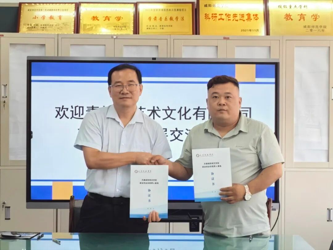 9月9日,教育科学学院与陕西青知藤艺术文化有限公司在弘道楼405会议室召开共建就业创业实践育人基地签约仪式。陕西青知藤艺术文化有限公司理事长高庆、公司相关部门负责人,我院两办主任及教师代表出席了此次会议。会议由学院党委副书记孟庆辉主持。