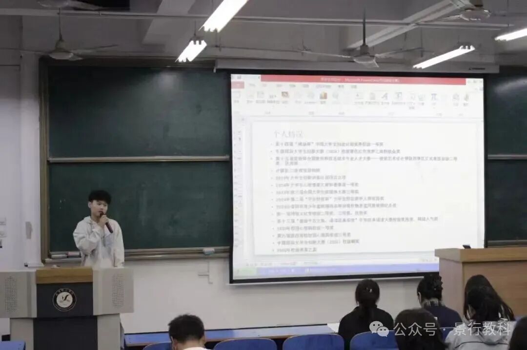 张子超学长以自身经历为切入点,展示了在学术竞赛、志愿服务、兴趣实践等领域的多项荣誉与突破。他鼓励新生打破“单一发展”的局限,主动尝试“斜杠青年”的成长模式——既要深耕专业领域筑牢基础,也要在兴趣探索中拓展边界。“大学是试错与积累的黄金期,”张子超学长强调,希望学弟学妹们在多元尝试中积累经验、完善自我,最终在不同领域找到价值支点,实现全面发展。现场新生认真聆听,纷纷表示将以学长为榜样,规划好大学生活。