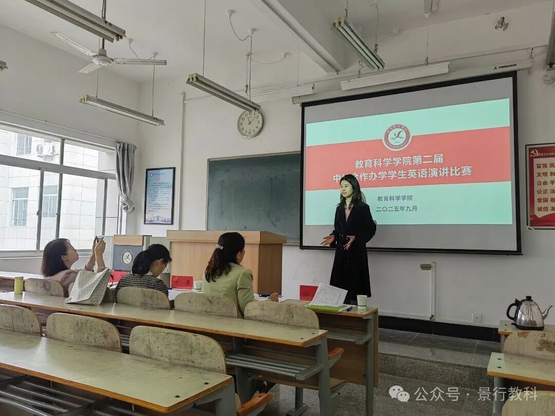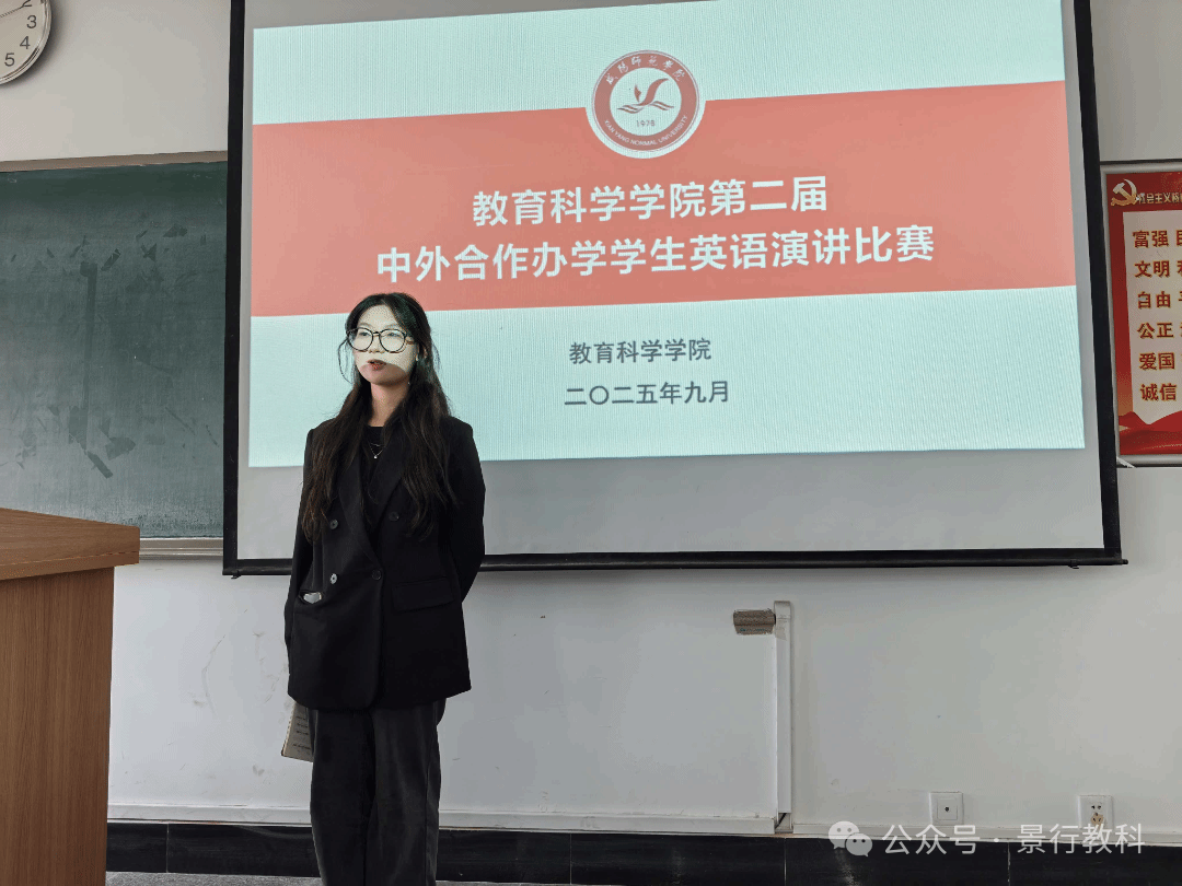 为了增强中外合作办学学生的文化自信与跨文化传播能力,彰显国际化办学风采与我院中外合作办学领域的育人成果,通过“以赛促思、以赛促学、以赛促践” ,引导同学们厚植家国情怀,拓展国际视野,用外语讲述中国故事,推动中华优秀传统文化创造性转化与创新性发展。教育科学学院于9月26日举办第二届中外合作办学学生英语演讲比赛。