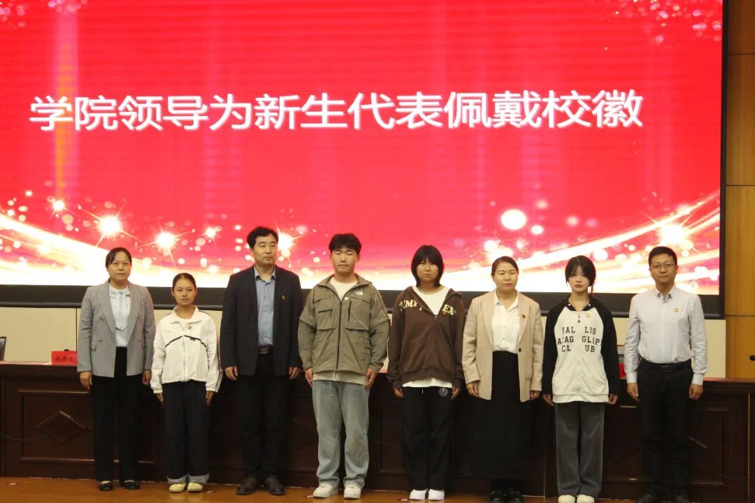 典礼在庄严的国歌声中拉开帷幕。教育科学学院院长毛红芳首先致辞,全面介绍了学院的办学历史、学科优势、师资力量以及人才培养成果,向新生表示热烈欢迎,并鼓励大家尽快适应大学生活,在专业领域深耕细作,努力成长为教育领域的优秀后备人才。随后,学院领导为新生代表佩戴校徽。