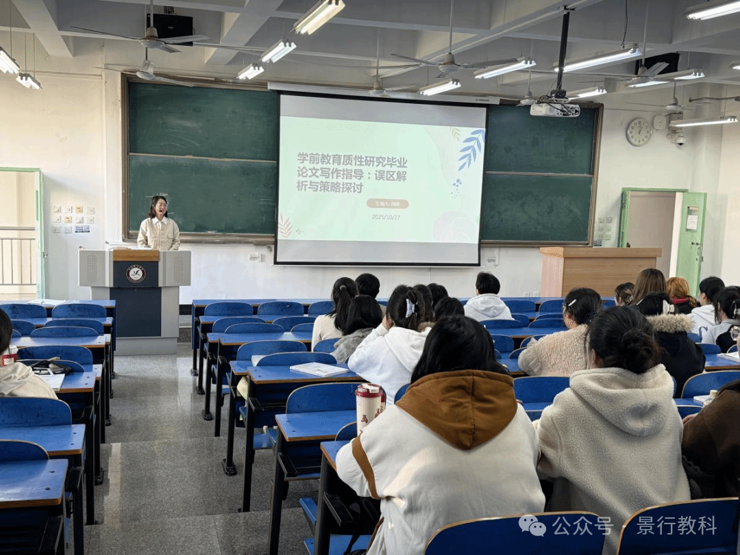 为进一步提升我院学前教育专业学生的科研素养与毕业论文写作能力,2025年10月27日下午2:30,学前教育中外合作办学教学部主任肖婷老师在3号教学楼510教室作题为《学前教育质性研究毕业论文写作指导:误区解析与策略探讨》的专题讲座。本次讲座聚焦质性研究的写作实践与方法指导,旨在帮助学生深入理解研究逻辑,提升毕业论文的整体质量与学术水平。