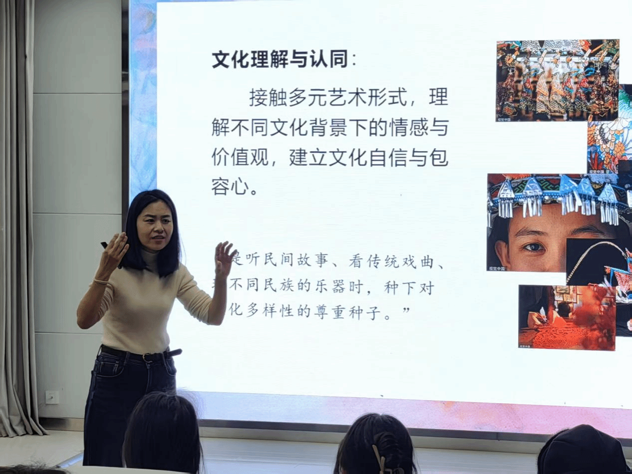 2025年11月18日下午,学前教育专业钟丽娟老师在3号楼521教室主讲了《以美育心,艺起成长:儿童美育中的艺术疗愈力量》的专题讲座,讲座围绕儿童美育的本质、艺术疗愈的机制及实践应用展开,旨在引导家长和教师通过艺术理解并支持儿童的情感与心理成长。