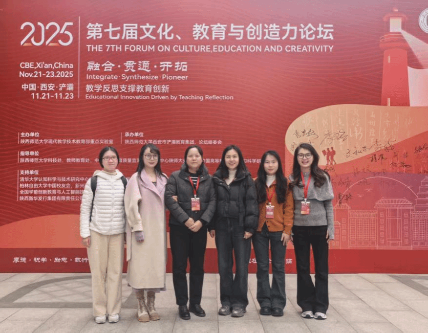 第七届文化、教育与创造力论坛于2025年11月21日—23日在西安举行,论坛以“融合·贯通·开阔:教育反思支撑教育创新”为主题,由陕西师范大学现代教学技术教育部重点实验室主办,陕西师范大学西安市浐灞教育集团论坛组委会承办。教育科学学院副院长赵彦美、专任教师钟丽娟、马丹、周田鑫、杨小茹,小学教育教育硕士张楠、杨心怡,受邀参加了本次会议。我院教师周田鑫受邀在分论坛进行了学术分享。