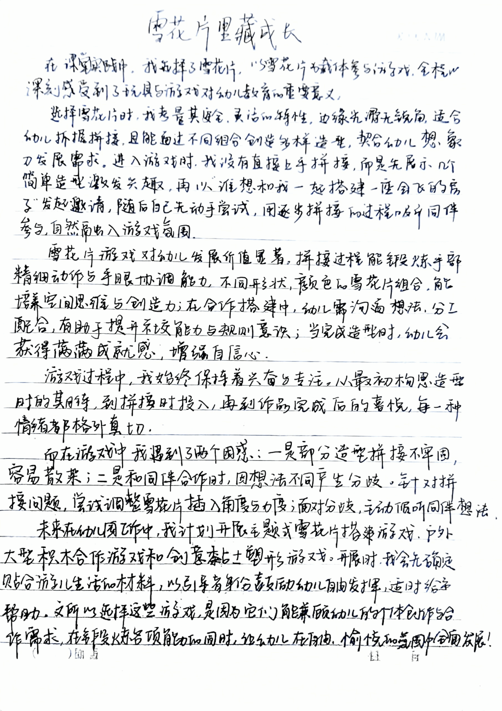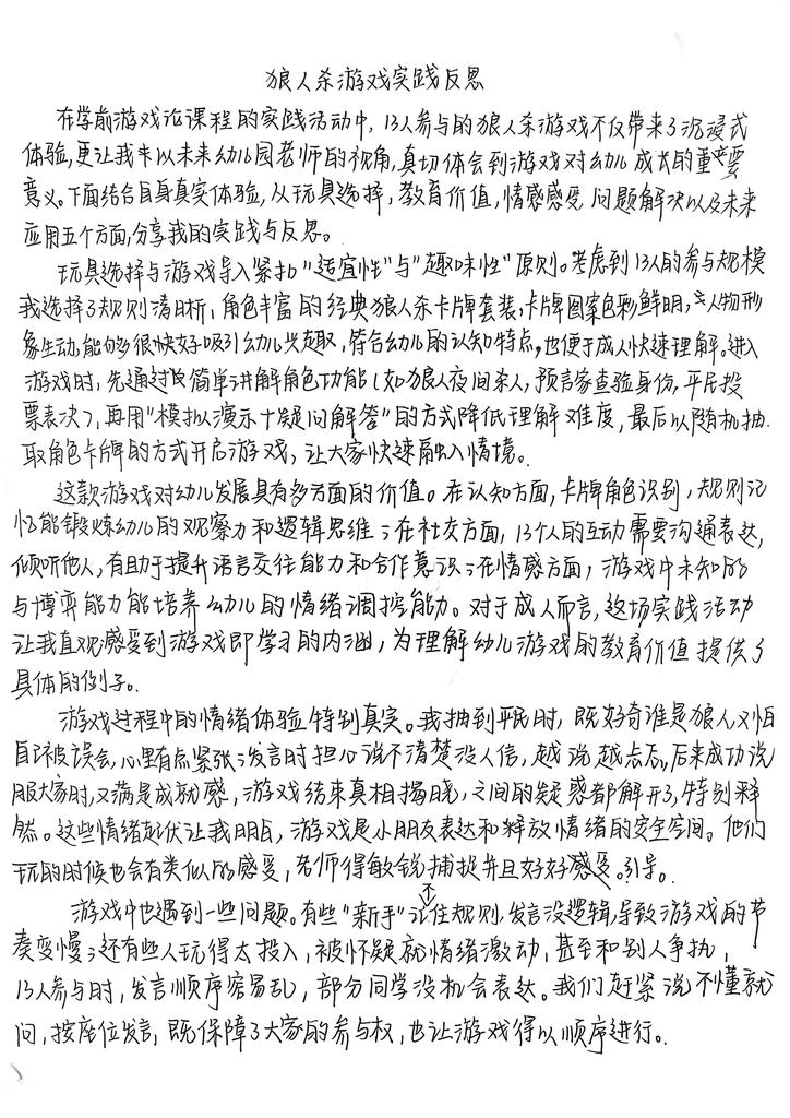 本次《学前游戏论》的实践活动,成功地将融为一体。同学们在亲身体验后,留下了充满真情实感的反思。