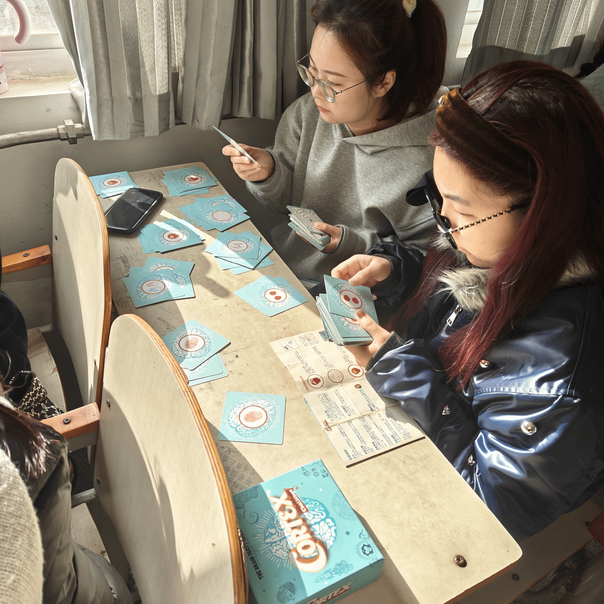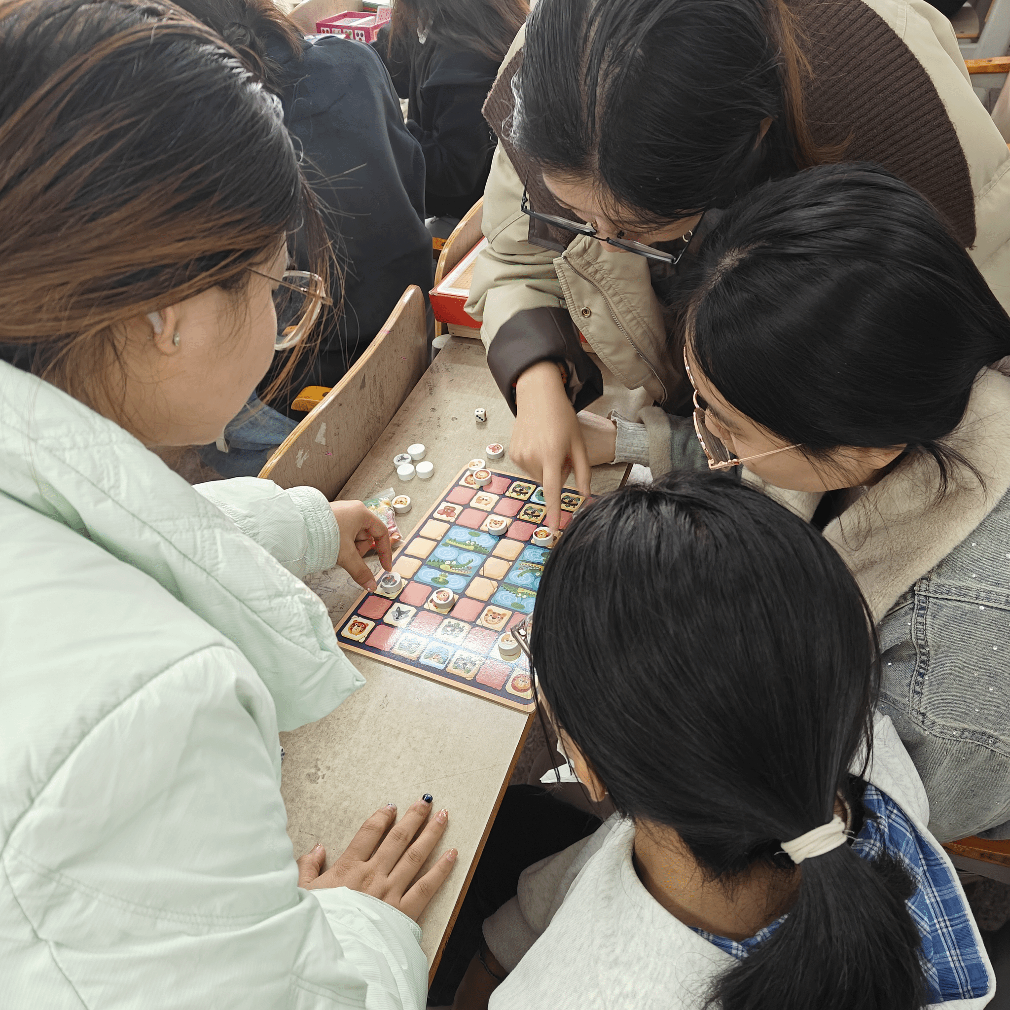 与结构游戏的集体协作不同,规则游戏课堂则充满了自主选择的乐趣与策略思考的火花。老师给同学们提供了多种品类的规则游戏玩具,从经典的棋类到现代的合作型桌游,在教室的各个角落,瞬间形成了多个充满活力的“游戏角”。