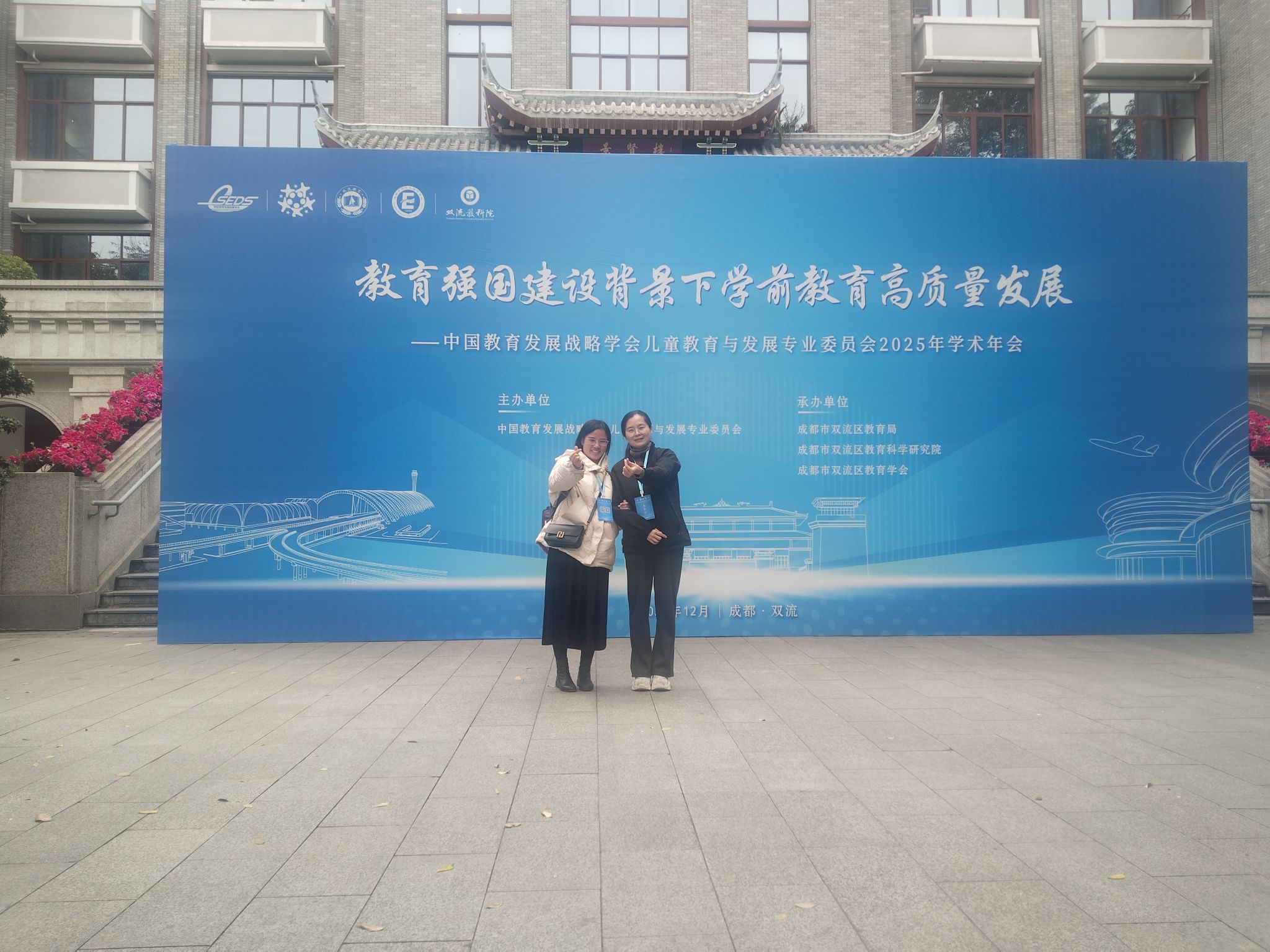 为紧跟学前教育高质量发展步伐,深入学习行业前沿理念与实践经验, 12 月 19 日至 20 日,中国教育发展战略学会儿童教育与发展专业委员会 2025 年学术年会暨 “教育强国建设背景下学前教育高质量发展” 研讨会在四川成都双流区隆重召开,咸阳师范学院学前教育专业南姣鹏、李洁两位教师参会,与来自全国各地的教育行政管理者、幼儿园园长、高校专家学者等业界同仁齐聚一堂,共探学前教育发展新路径。
